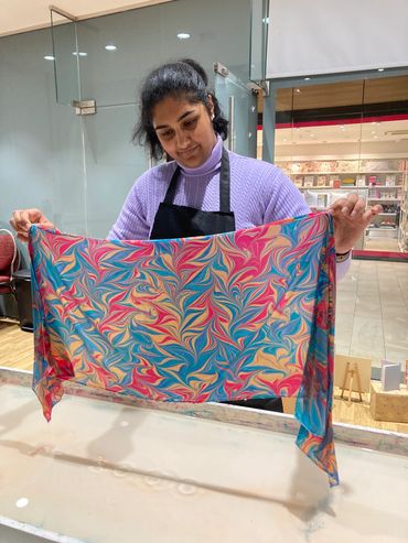 Book a one-to-one tutorial and I'll guide you through the process of creating your own marbled pattern to transfer onto a silk scarf. Take away your very own unique wearable masterpiece, or maybe create a personalised gift for someone special.